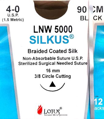 Lotus Silkus #4-0 Black Braided Silk Suture (Pack of 12)