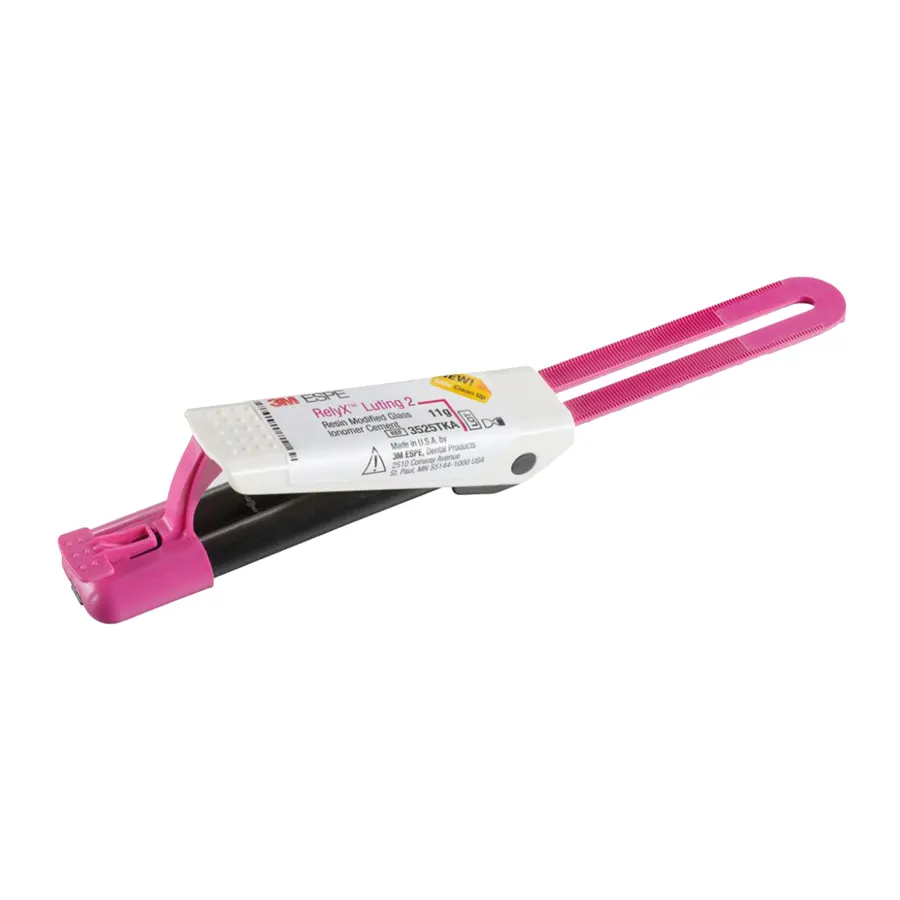 RelyX Luting 2 by 3M is an advanced, self-curing, radiopaque, fluoride-releasing resin-modified glass ionomer luting cement. The RMGI luting cement comes in a paste-paste delivery system from the ‘Clicker’. RelyX exhibits high bond strength and virtually no post-operative sensitivity.