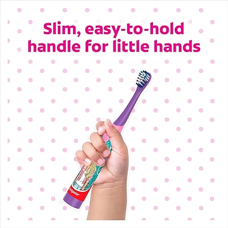 Colgate Barbie Battery Powered Electric Toothbrush, Age 3+, Kids toothbrush with Extra Soft Bristles and Slim Handle