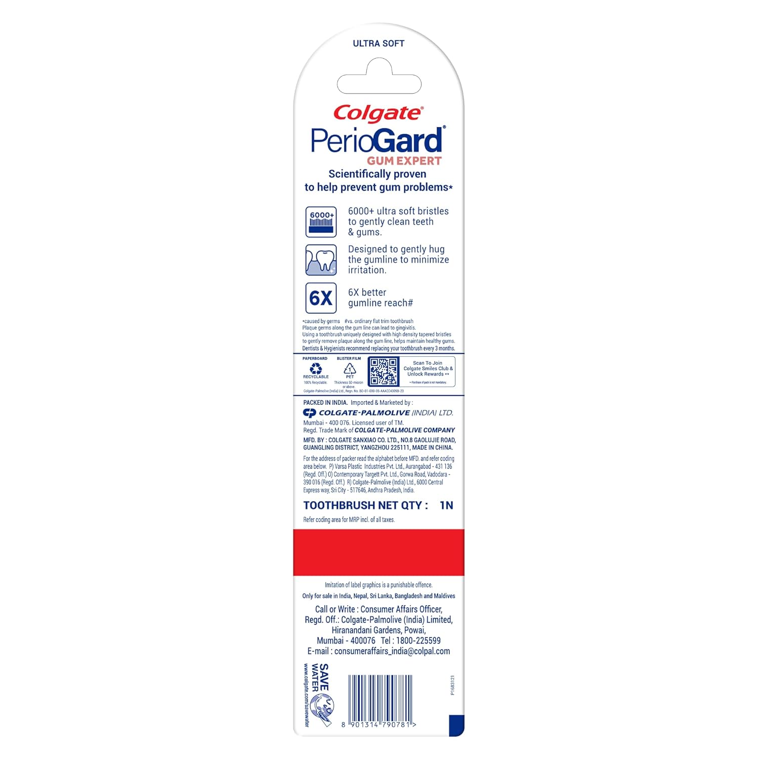 Colgate PerioGard Gum Expert Toothbrush helps reduce gum problems from the first week of usage. Has 6000+ Ultrsoft Bristles to gently clean teeth and gums. Designed to Gently Hug the gum line to minimize irritation & provides 6X Better Gumline reach.