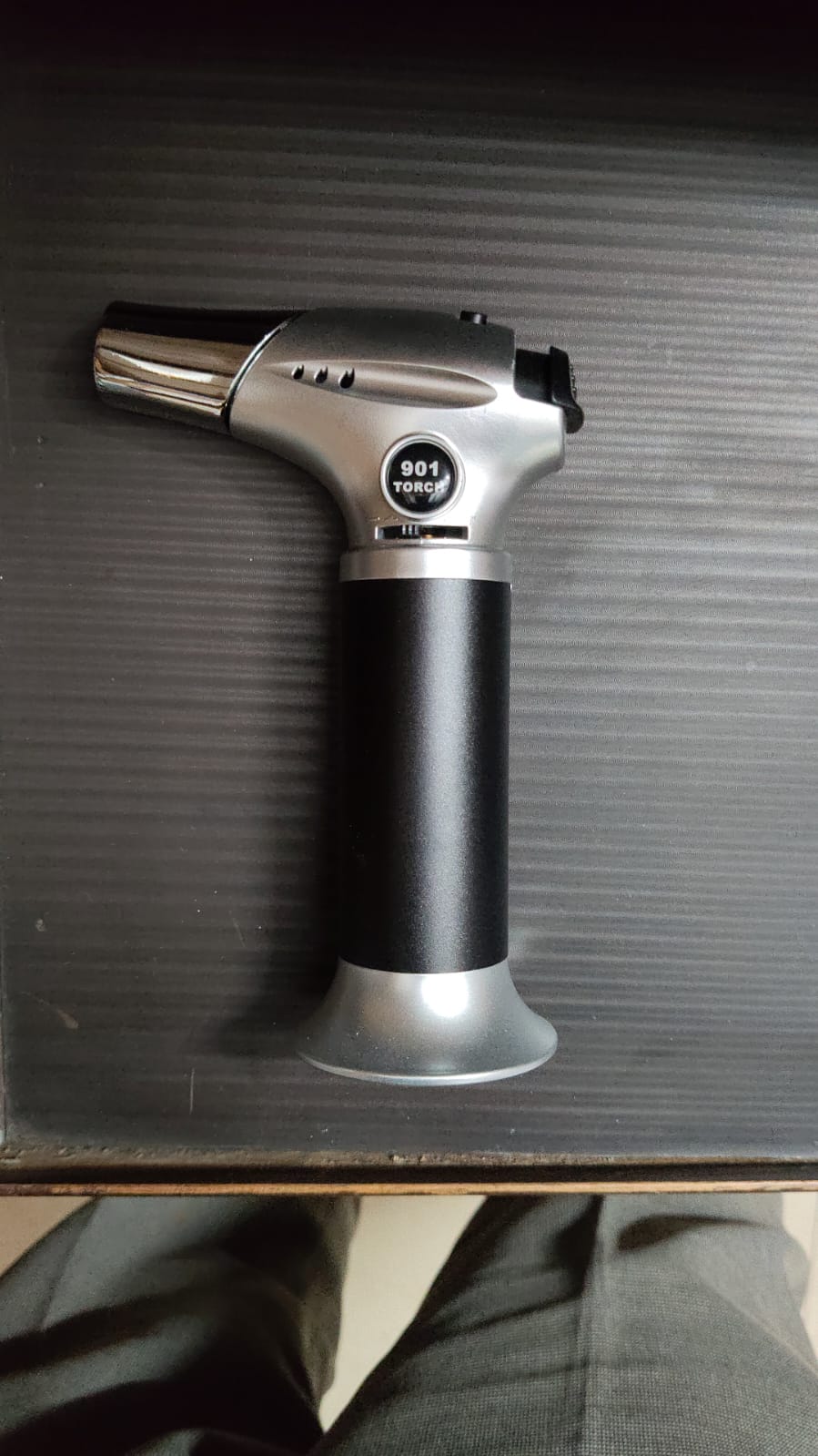 - Press the ignitor button to light the torch.