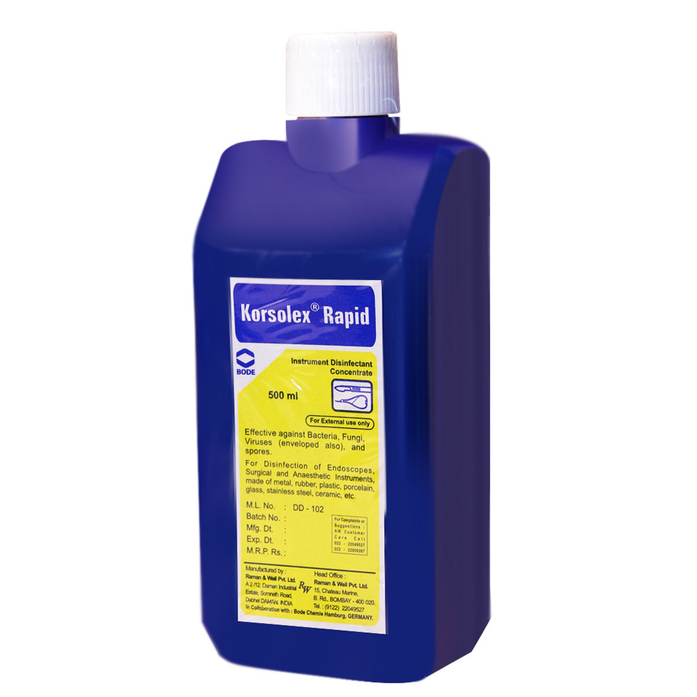 Korsolex Rapid is a broad spectrum microbicidal ready-to-use, highly alkaline, alcoholic disinfectant solution for the cleansing disinfection in preoperative and postoperative state of other stainless steel instruments.
