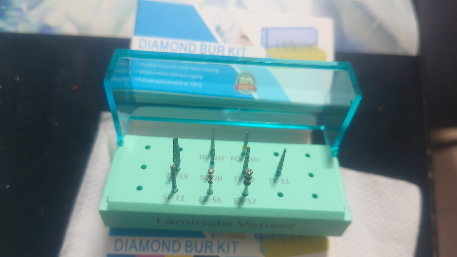 Laminate Veneer Bur Kit offers a carefully selected assortment of diamond points designed for precision and efficiency during tooth preparation and contouring/finishing of direct cosmetic restorations. With special attention to preserving tooth structure, this kit includes unique shapes of diamond points ideal for depth orientation, minimally invasive cavity preparation, and direct veneer preparation. Its versatile design ensures accurate results while maintaining the integrity of the tooth, making it an essential tool for professionals seeking high-quality outcomes in cosmetic dental procedures
