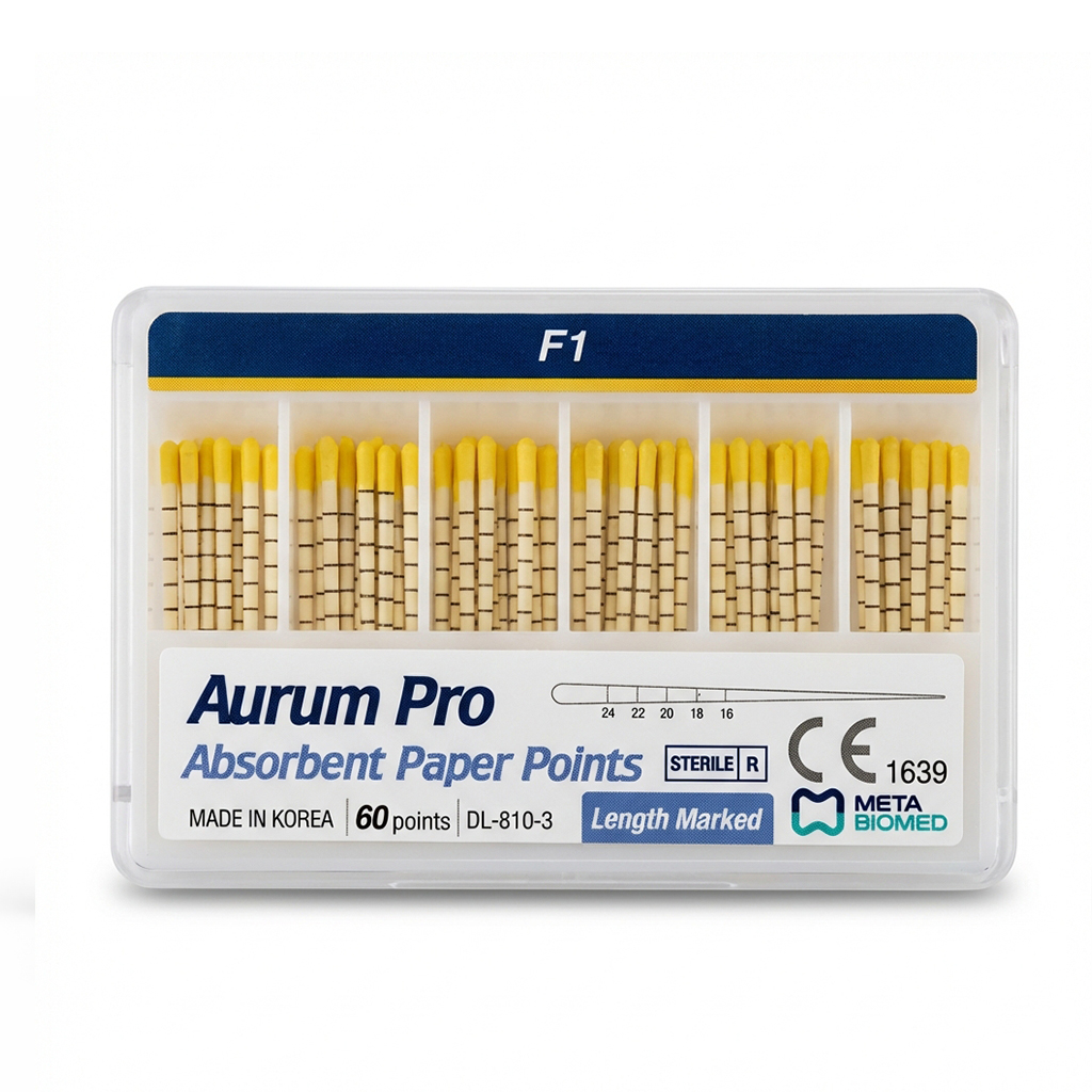 Meta Protaper Paper Points with length marking are indispensable tools in root canal therapy. The distinctive feature of length marking ensures accurate depth measurement and precise placement within the root canal, optimizing treatment outcomes. These sterilized endodontic paper points offer reliability through gamma-ray sterilization, adhering to rigorous standards for infection control. The uniform rolling process guarantees consistency in size and shape, enhancing their effectiveness. As highly absorbent instruments, they aid in moisture removal and medicament introduction. With a commitment to quality, Meta Protaper Paper Points with length marking provide dental professionals with a precise and reliable solution, contributing to the success of root canal procedures